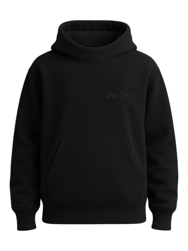Il design essenziale con cappuccio avvolgente e tasca a marsupio unisce praticità e carattere sportivo, mentre il logo discreto sul petto racconta l’identità del brand X3 Por Tres, nato per gli amanti del padel.